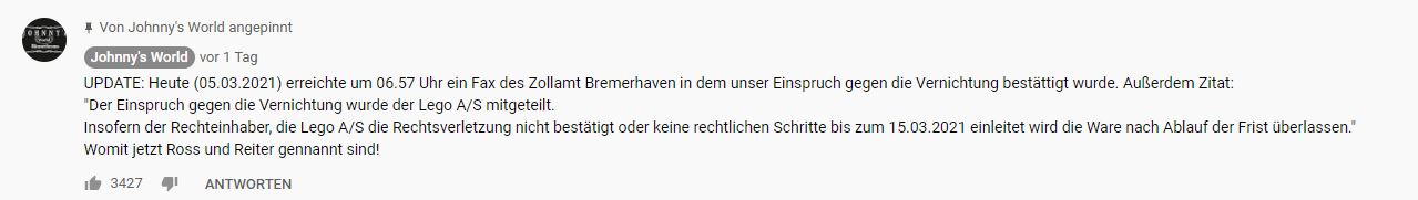 Worauf ich aber wirklich gespannt bin, wie sich Lego jetzt positionieren wird. Ein wahnsinnig guter Zug, den Thorsten hier auf dem Schachbrett präsentiert hat. Ich denke, Billund und die Army of Lawyers werden damit überhaupt nicht gerechnet haben, vor allem nicht, dass der Shitstorm jetzt auch offline medial verbreitet wird (Zum Beispiel: Neue Westfälische – Achtung Paywall!), was ein Supergau für einen auf Friede-Freude-Eierkuchen eingestellten Konzern darstellt. Klar, es ist nur ein Sturm im deutschsprachigen Raum, aber deutschsprachige Markt ist für Lego in Europa der wichtigste Markt überhaupt. Aber es ist vorbei mit dem Platzhirschdasein Lego, ihr seid auch nur einer von mehreren Herstellern und Marken da draußen. Findet euch damit ab, konzentriert euch, durch Qualität und Innovation zu punkten und nicht durch Anwälte. Aber das sagte ich damals schon im Artikel im Dezember 2020.